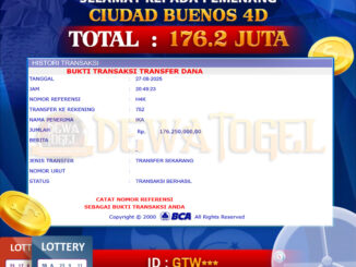DEWATOGEL JACKPOT TOGEL di CIUDAD BUENOS 4D Rp 176.200.000,- LUNAS