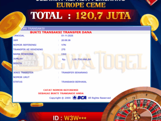 DEWATOGEL JACKPOT TOGEL DI SAIGON TOTO 4D Rp 96.000.000,- LUNAS MEMBER DEWATOGEL MENERIMA PELUNASAN KEMENANGAN JACKPOT TOGEL DI SAIGON TOTO 4D Rp 96.000.000,- LUNAS “DEWATOGEL […]
