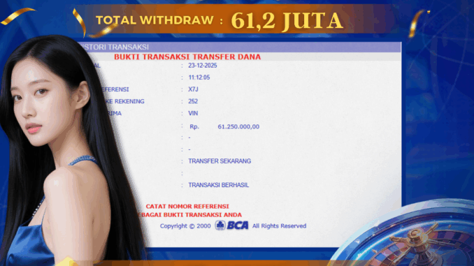 DEWATOGEL mengucapkan selamat kepada user id : VIN*** yang telah berhasil mendapatkan jackpot pada permainan LIVE CASINO DI DUEL DICE. Kemenangan sebesar Rp 61.250.000,-. telah dibayarkan LUNAS oleh pihak dewatogel kepada pemilik user id setelah yang bersangkutan mengisi formulir withdraw. Proses pencairan dana berlangsung sangat cepat hanya dalam waktu 5-10 menit sudah berada dalam rekening pemilik user id. Bukti transfer yang dapat anda lihat adalah bukti SAH / VALID yang langsung di dapatkan melalui bukti transaksi dari Bank yang digunakan untuk pengiriman dana pada rekening pemilik user id. Terima kasih kami sampaikan kepada para pengguna setia DEWATOGEL yang telah menggunakan situs kami, sebagai Bandar Terpercaya yang pastinya membayar semua kemenangan member hingga lunas. Apakah DEWATOGEL PENIPU ? Reputasi “DEWATOGEL TERPERCAYA” sudah sangat melekat. puluhan hingga ratusan ribu pengguna setia DEWATOGEL tetap menggunakan situs terbesar dan terbaik di Indonesia ini. Hapus rasa was-was dan khawatir anda, kemenangan anda berapapun PASTI dibayarkan hingga lunas.